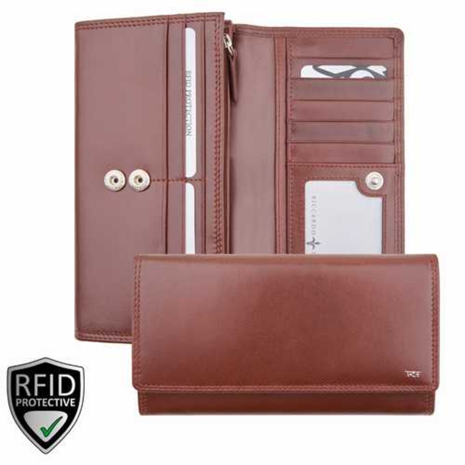 032840 059A Riccardo Ferducci női bőr pénztárca konyak RFID